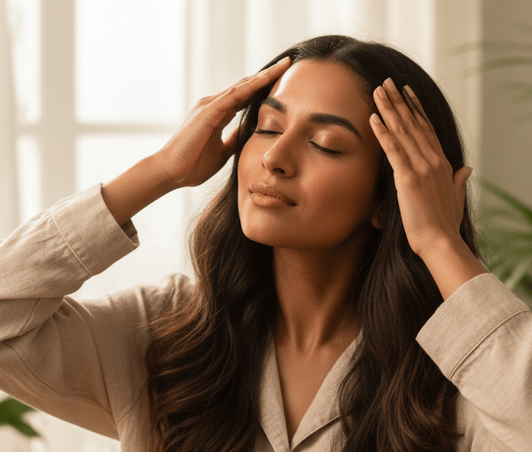 Apply: Pour a generous amount of oil onto your palms and apply it directly to the scalp.